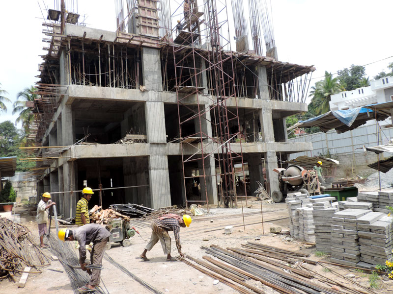 Heavy reinforced cement concrete foundation with piles and pile cap/Suitable foundation as per the soil test. RCC frame structure with concrete block partitions. Concrete grade as decided by the structural consultant.